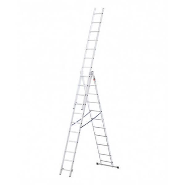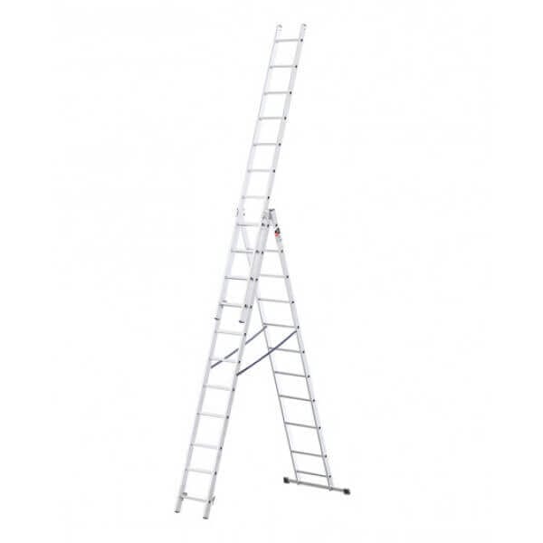 Алуминиева стълба Drabest, трираменна, 3×11 стъпала, 150 кг, 7м