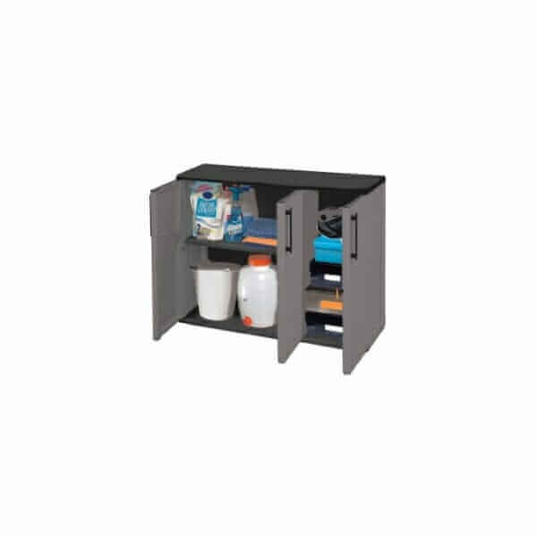 Изработен от висококачествен PVC материал, шкафът се отличава със своята здравина, дълготрайност и лесна поддръжка. Той е устойчив на влага и износване, което го прави идеален за употреба в различни условия – от кухнята до гаража.