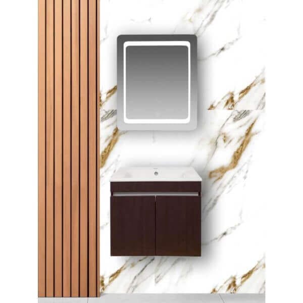 С размери 61х43х52 см, долният шкаф за баня с мивка Makena Лариса предлага достатъчно място за съхранение на вашите принадлежности с две чекмеджета. Изработен от водоустойчив PVC материал, той е проектиран да устоява на влагата и да запази качеството си дори в най-влажни условия. Плавното затваряне на чекмеджетата осигурява тишина при употреба, което е особено важно в домашната обстановка.