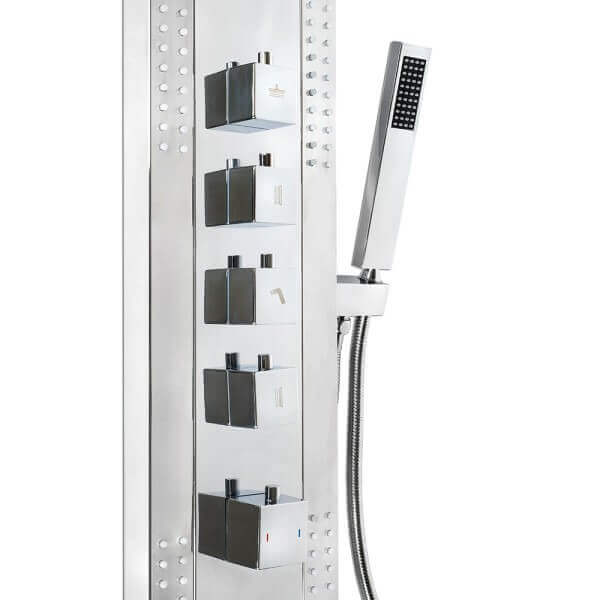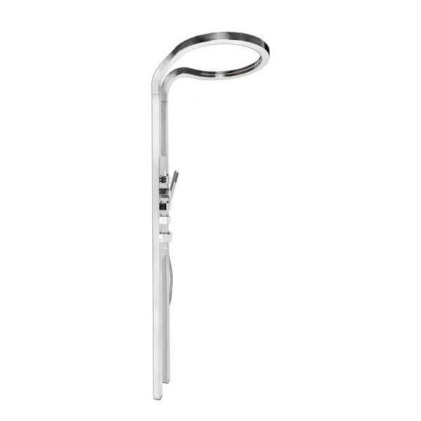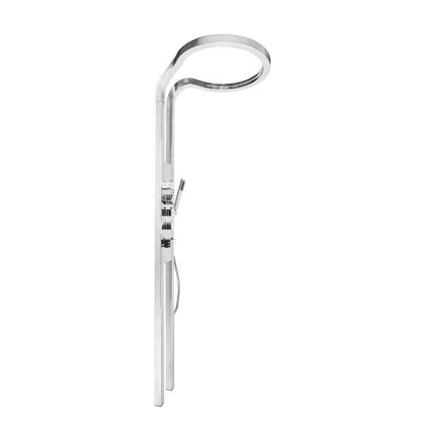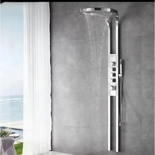 Комплектът включва кръгъл душ тип дъжд и четири струи за тяло, които създават усещане за релакс и масаж. Размерите му са 50 х 63 х 210 см, а дебелината на овалната форма е 4 см, което го прави удобен за монтаж във всяко пространство. Теглото от 16 кг говори за здравината на използваните материали. Душ комплект Chrome Angel месингов с термостат е идеален избор за модерна и функционална баня.