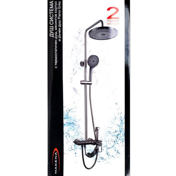 Душ система Makena Piano Grey с термостатичен душ, ръчен душ и месингов корпус, Сив