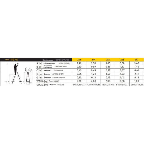 - Максимален товар: 150 кг