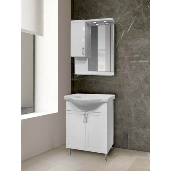 Дизайнът на бял шкаф за баня Макена е съвременен и елегантен, което го прави идеален за всякакъв интериор. Водоустойчивият шкаф за баня гарантира дълготрайност, така че да се наслаждавате на продукта дълги години. Освен това, стенният монтаж освобождава пространство на пода, придавайки на банята ви по-широк вид.
