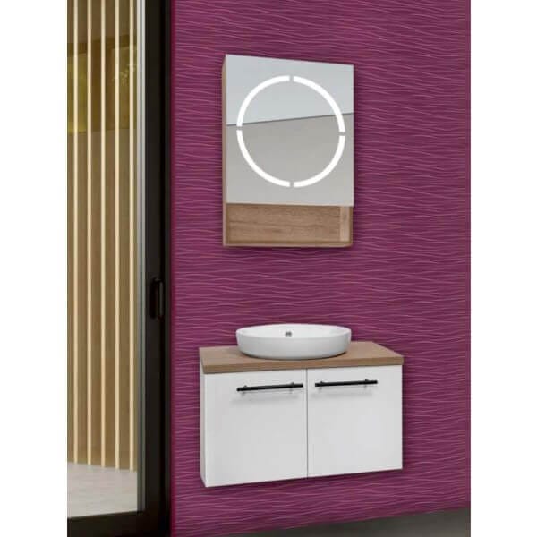 С горния шкаф за баня с огледало Makena Монако всичките ви нужди за съхранение ще бъдат задоволени. Вътрешното пространство предлага достатъчно място за всички необходими принадлежности, а LED огледалото ще осигури перфектно осветление при всяко ползване.