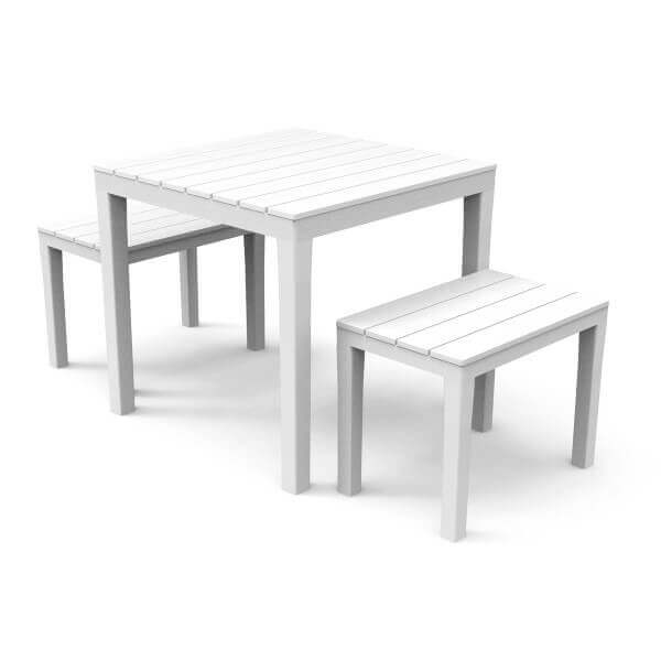 Градински сет Papua Bianko, 3 части, бял, 1 квадратна маса + 2 пейки