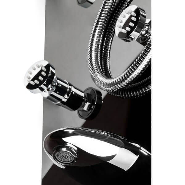 Хидромасажен душ панел Cascada черен 20х7х150 см осигурява прецизен контрол на температурата чрез вграден дисплей. По този начин винаги получавате перфектната на температура вода без изненади. Масажният режим е особено подходящ за облекчаване на напрегнатите зони в гърба, което прави ежедневния душ много повече от просто ритуал – той става момент на възстановяване и спокойствие.