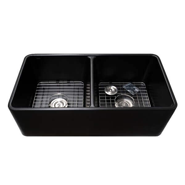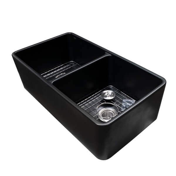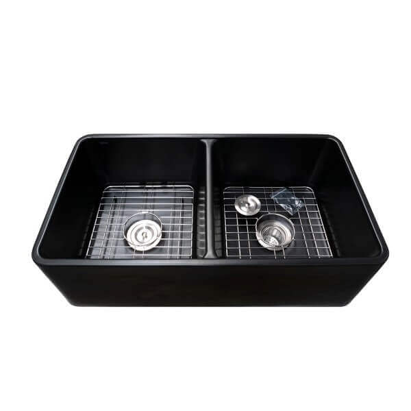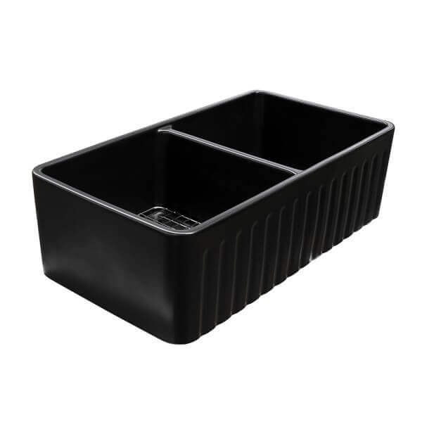 Керамична кухненска мивка Cascada черен мат, двойна, 83.8×45.7×25.4 см