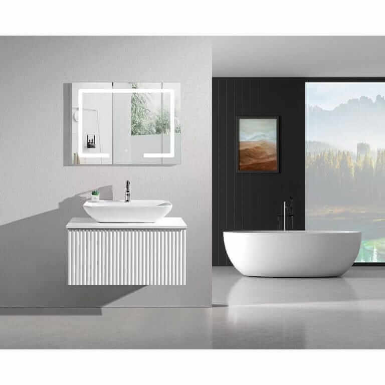 Огледалото с размери 80 х 60 см е оборудвано с вградено LED осветление, което осигурява отлична видимост и добавя съвременен акцент към банята. Осветлението е идеално за всекидневни козметични рутини, като осигурява ясна и равномерна светлина, която улеснява приготвянето.