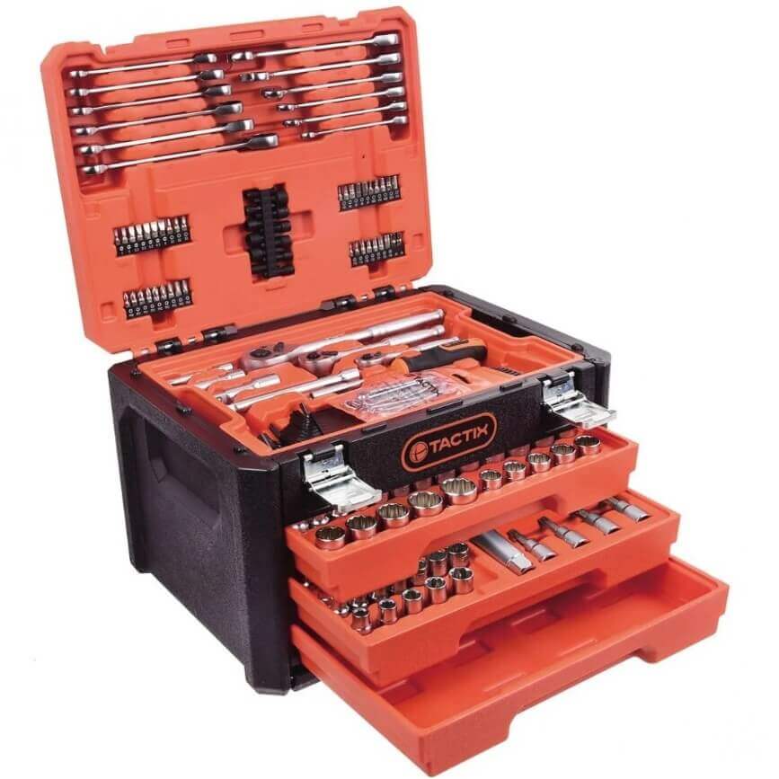 Комплект инструменти в куфар Tactix 254 бр предлага всичко необходимо за всяка задача, независимо дали сте професионалист или домашен майстор. С него ще спестите време и усилия, защото всички инструменти са подредени удобно и лесно достъпни. Здравият куфар с три чекмеджета ви позволява да организирате инструментите по начин, който ускорява работния процес и намалява стреса.
