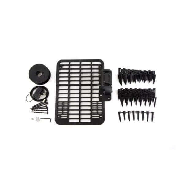 Цифровият дисплей за настройка и програмиране на ПИН код осигурява допълнителна сигурност и лесен контрол. В комплекта са включени всички необходими аксесоари, включително зарядна станция, батерия, винтове за монтаж на станцията, остриета, граничен проводник и фиксиращи колчета.