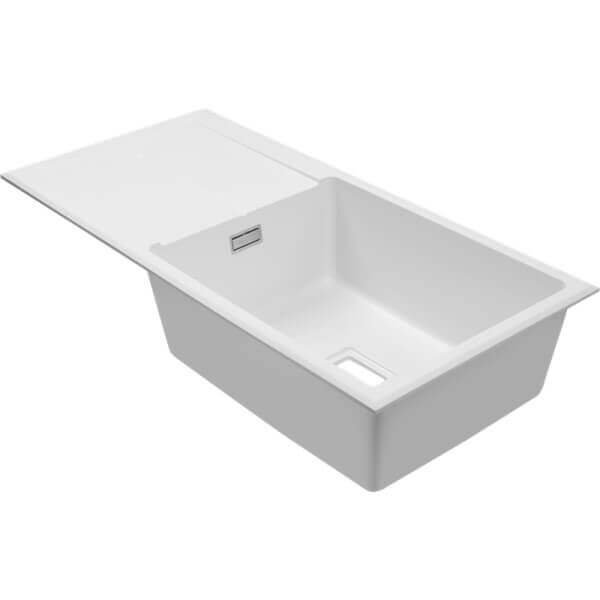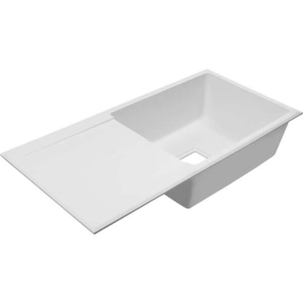 Кухненска мивка Cascada с едно корито и отцедник, гранит, Бял, 94 х 45 х 21,5 см