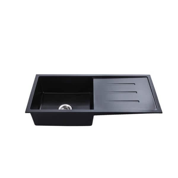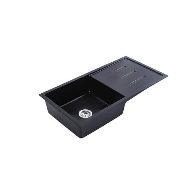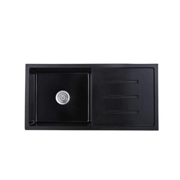 Кухненска мивка Cascada с едно корито и отцедник, гранит, Черен, 100 х 50 х 20 см