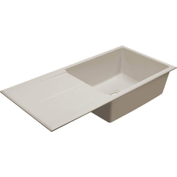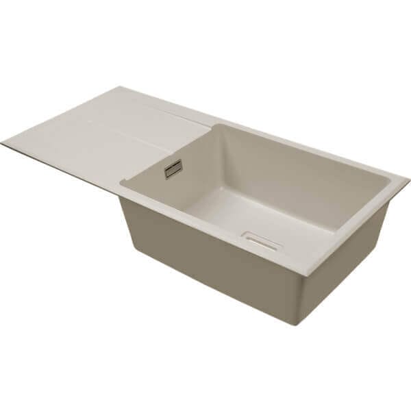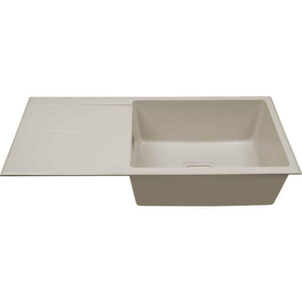 Кухненска мивка Cascada с едно корито и отцедник, гранит, Крем, 94x45x21.5 см