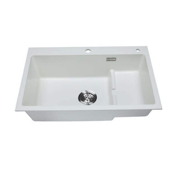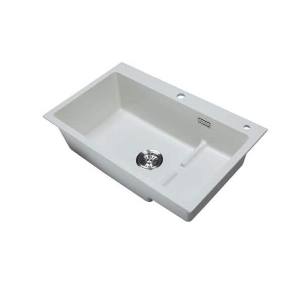 Кухненска мивка Cascada с помощно корито, гранит, бял, 80/49/22