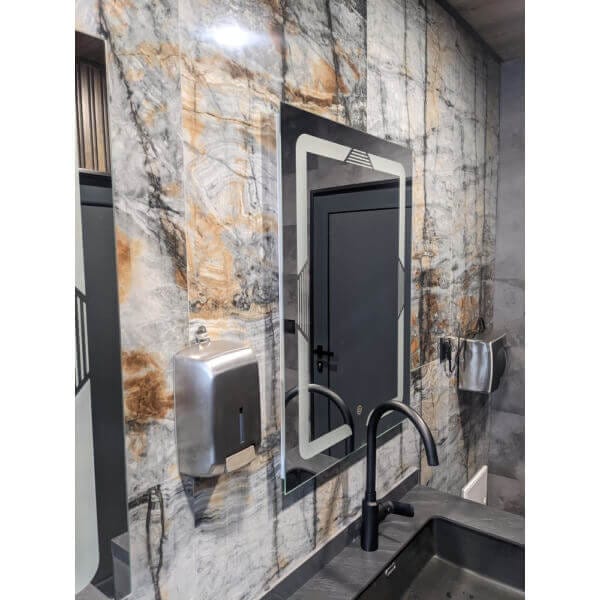 Осветлението на огледалото е от тип LED, което гарантира ярка и чиста светлина. Това осветление не само подобрява видимостта, но също така добавя модерен и стилен акцент към всяка баня.