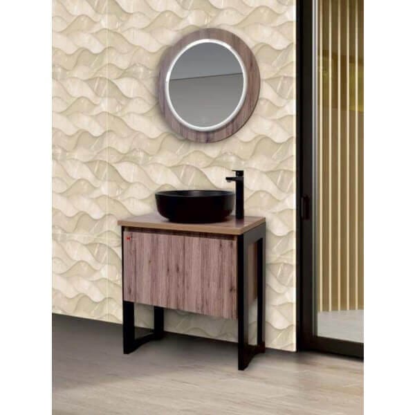 С размери 65 х 41 х 86 см, шкафът лесно се интегрира в пространството, без да заема много място. Порцелановата мивка добавя нотка лукс и е лесна за поддръжка. Стенният монтаж освобождава пода и създава усещане за простор.