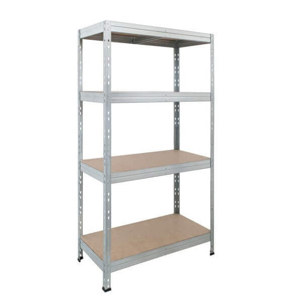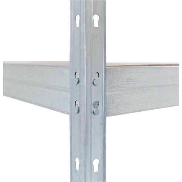 С четири рафта, този стелаж предлага достатъчно пространство за съхранение на различни предмети. Поцинкованото покритие предпазва стелажа от корозия и осигурява дълготрайна употреба. Лесното безболтово сглобяване с иновативната система с нитове гарантира бърз монтаж, без да губите време и усилия.