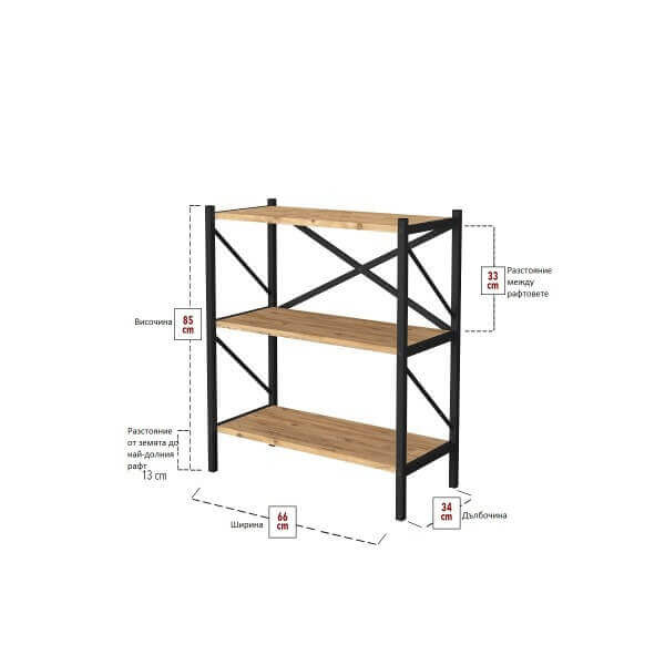 С размери 66×85 см, металната етажерка 66×85 см е перфектна за всякакви помещения – от хола до офиса. Изработена от качествено ПДЧ, тя е устойчива и дълготрайна. Черната етажерка за съхранение не само изглежда прекрасно, но също така е лесна за поддръжка. Праховобоядисаната повърхност осигурява защита срещу надрасквания и механични повреди.