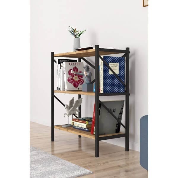 Метална етажерка с 3 рафта Черна е идеалното решение за вашето пространство. С елегантен черен дизайн, тя добавя стил и функционалност във всяка стая. Тази етажерка от ПДЧ с 3 рафта предлага достатъчно място за съхранение на книги, декорации или други вещи, които искате да организирате.