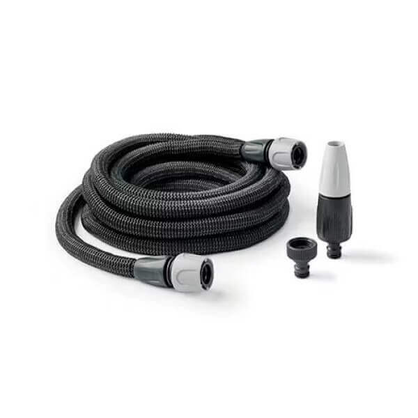 Лесен за употреба и практичен, Разтегателен маркуч Aquapop Grey Easy15 предлага до 15 метра работна дължина, която се разтяга само под налягане и се прибира без деформации. Изработен от гума, текстил и пластмаса, този маркуч е защитен с здрава текстилна обвивка, осигуряваща издръжливост и устойчивост на износване. С регулируем струйник и дебит до 14 л/мин при 4 bar, разтегателен маркуч Aquapop Grey Easy15 е идеален за разнообразни градински задачи, като улеснява поливането и поддръжката на вашия двор.