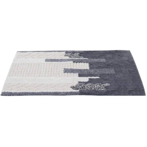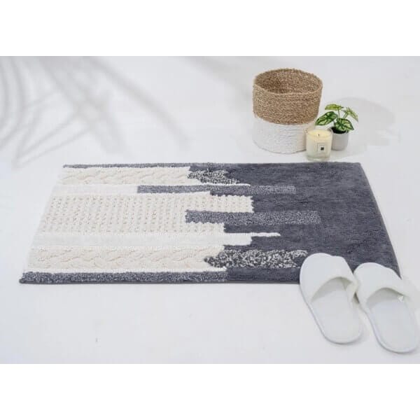 Ръчно тъкана постелка за баня FHF-BH-2024-17 предлага усещане за мекота и комфорт веднага щом стъпите върху нея. Тя абсорбира влагата бързо и надеждно, което ви предпазва от хлъзгане и студени подове. Сивобелият дизайн придава стил и хармония на всяка баня, а естественият памук гарантира дълготрайна мекота и здравина.
