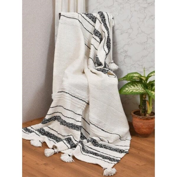 Ръчно тъкано одеяло FHF-TH-2024-01 е перфектният избор за уют и стил във вашия дом. Изработено от 100% памук, това одеяло предлага естествена мекота и дишащ комфорт. С размери 130×170 см, то е достатъчно голямо, за да ви обгърне с топлина в студените вечери. Ръчно тъканото одеяло FHF-TH-2024-01 впечатлява с изчистен черно-бял дизайн, който лесно се вписва във всеки интериор. Произведено в Индия от опитни занаятчии, то носи уникален характер и гарантира високо качество. Лесната поддръжка го прави удобен за ежедневна употреба – пера се на деликатен цикъл в пералня без гладене и избелване. Това одеяло е идеален подарък за всеки, който обича функционални и красиви аксесоари за дома.