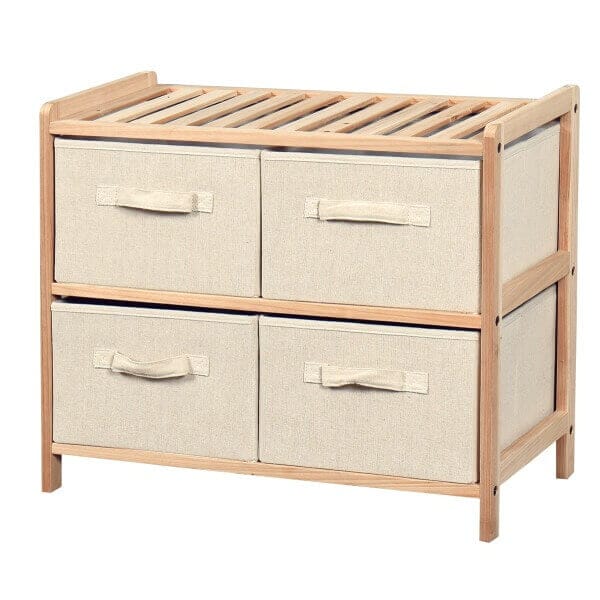 С размери 59х28х50 см, този компактен шкаф лесно се вписва в малки помещения, което го прави идеален за всяко домашно или офис пространство. Четирите чекмеджета предлагат достатъчно място за съхранение на всичките ви вещи – от документи до лични принадлежности. Изработени от текстил, чекмеджетата осигуряват лекота при отваряне и затваряне, а същевременно добавят модерен акцент.