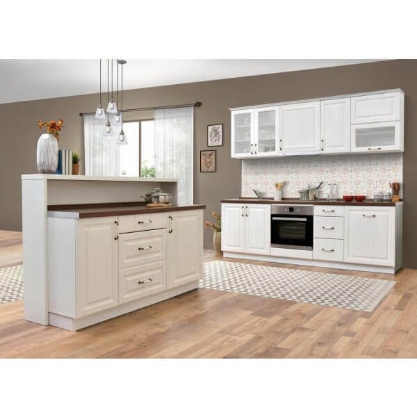 Шкаф VH60 Рустик съчетава стил и функционалност с изискан дизайн, който се вписва прекрасно във всеки модерен интериор. Моделът предлага повдигащи, чупещи се врати с витрина, изработени от качествено МДФ с рустик декор, а корпусът е здрав и стабилен благодарение на 18 мм ПДЧ в бял цвят. Ретро дръжките и плавното затваряне с механизъм Blum AVENOST HF осигуряват лесна и комфортна употреба. Размерите 60 x 31 x 72 см правят шкафа подходящ за горен монтаж, който спестява пространство и добавя елегантна нотка към кухнята или дневната.