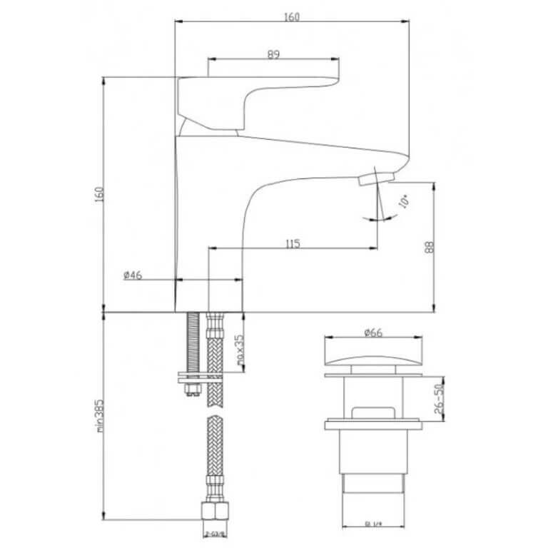 Комплектът включва „клик-клак“ сифон G1 1/4 и две гъвкави връзки G3/8″ за присъединяване с дължина 40 см, заедно с всички необходими средства за монтаж, което гарантира лесна и бърза инсталация.