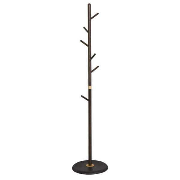 Стояща закачалка от бамбук и MDF, Черен/Златен, 39.6 х 39.6 х 178 см