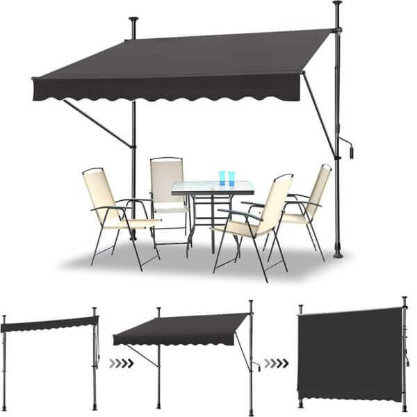 С лесната за използване манивела, можете бързо и удобно да регулирате позицията на тентата. Тя не само че добавя уют на вашето открито пространство, но и ви позволява да се насладите на свежия въздух, без да се притеснявате за слънчевите лъчи. Изключителният метален каркас с алуминиева ролка гарантира стабилност и издръжливост, което прави тентата с манивела My Garden WRAW02 практичен и стилен избор.