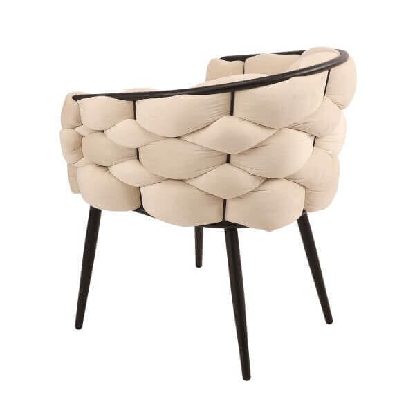 Изработен от висококачествени материали, този стол е не само красив, но и изключително здрав. Краката му са прахово боядисани в черно, което добавя допълнителна стабилност и издръжливост. Трапезен стол Flow с тапицерия от кадифе е идеален за всеки дом, който търси съчетание от стил и комфорт.